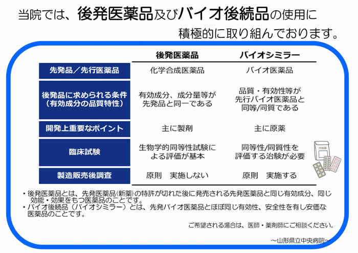 後発医薬品(ジェネリック)及びバイオ後続品(バイオシミラー)の使用について