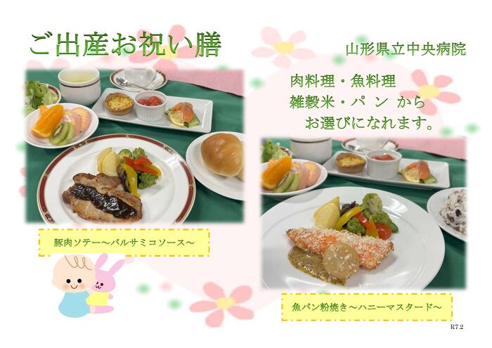 毎年1回、山形県立米沢栄養大学の学生と山形県立4病院の管理栄養士が共同で考案した減塩メニューを提供しております。山形県民の健康課題の一つである「減塩」を推進するとともに、本県医療の質の向上、人材の育成、資質の向上にも取り組んでいます。平成26年からスタートし、令和5年に10年目を迎えました。