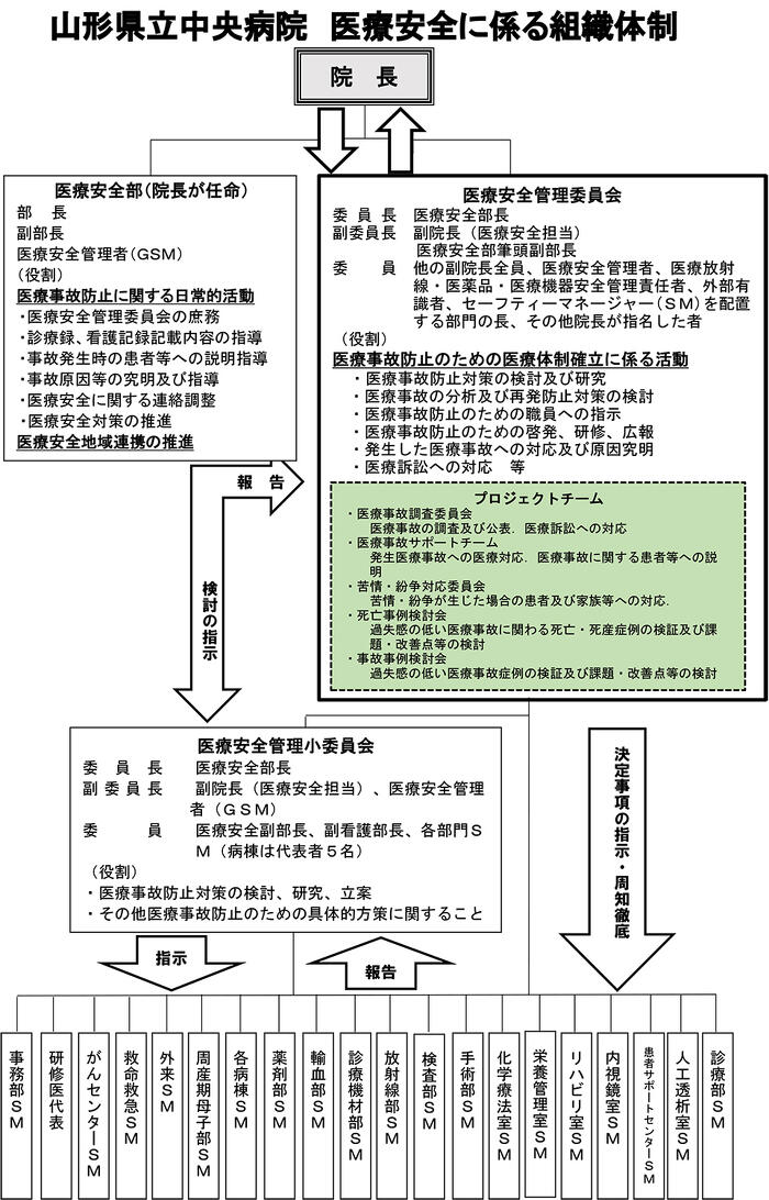 (2)医療安全管理委員会 - 前項第1号に規定する医療安全部は、当院における医療安全対策の推進に関する業務を総括するとともに、医療安全管理者(ジェネラルセーフティマネージャー)を配置し、同項第2号に規定する医療安全管理委員会(以下、「委員会」という。)の庶務を行う。