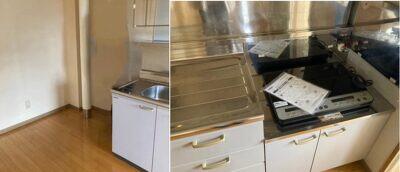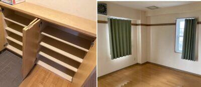 大容量の靴箱、16帖ほどある広いリビングダイニング、キッチンはプロパンガスで、私は二口の置き型コンロを置いて使っています。一人暮らしにはあまりにも、十分すぎるお部屋です。ちなみに冬は、窓が多くて少し寒いのでこたつがあると便利です。