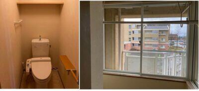 トイレはもちろんウォシュレット機能付きです。キッチンの横には、物干し部屋があります。ここは5号官舎との決定的な違いですね。