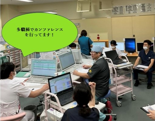 他に、泌尿器科カンファレンス、認知症ケアカンファレンスや緩和ケアカンファレンス、NSTカンファレンスなど、日々多職種とカンファレンスを行っており、患者さんが安心して治療・看護を受け、一日でも早く日常生活に戻られるようにスタッフ一丸となって奮闘しています。