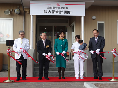 山形県立中央病院に勤務する職員の子育て支援、福利厚生の充実を図るため、病院敷地内に院内保育所を建設し、平成28年4月1日に開所しました。