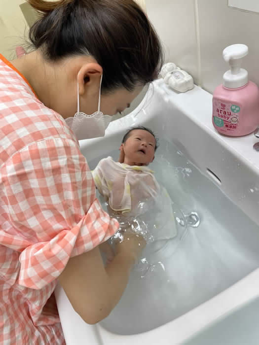 入院中はお母さんと赤ちゃんが、ずっと一緒に過ごせるようにお手伝いし入院中に沐浴の練習もします。