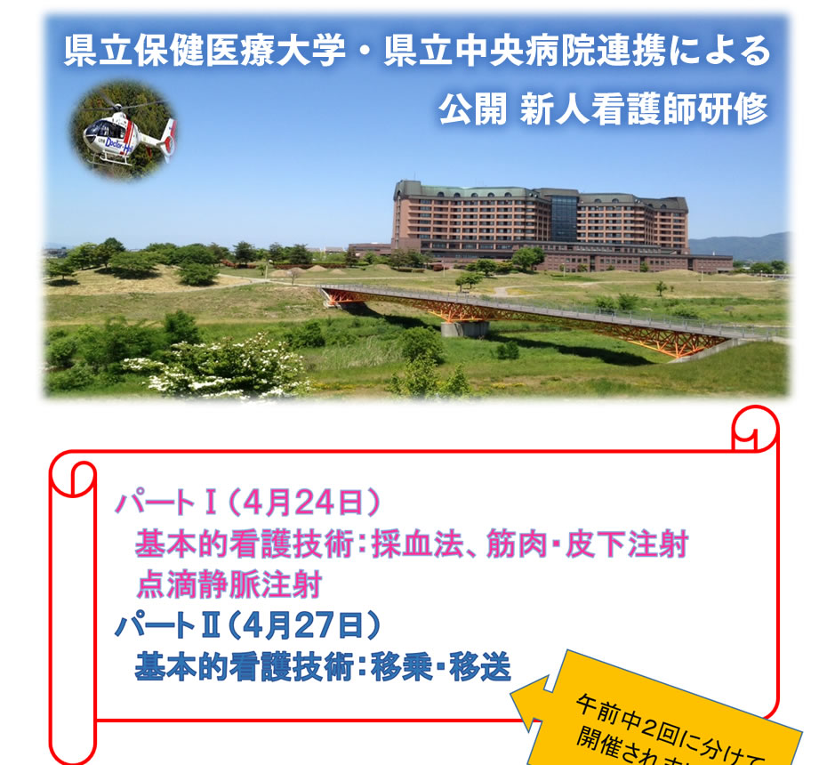 県立保健医療大学・県立中央病院連携による公開 新人看護師研修