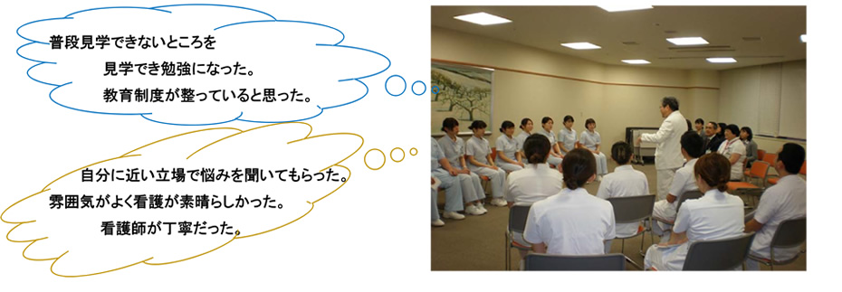 近年、医療を取り巻く環境は、高度化・多様化し、めまぐるしく変化しています。社会や組織、看護対象のニーズに応えるためには、臨床と教育が協働して看護を創造し、看護職者を育てていくことが大切になります。そこで、臨床や教育の課題について共通認識を持ち、教育と看護実践の質向上に向けて取り組みたいと考え、山形県立保健医療大学との連携を図ることとなりました。平成26年度は「大卒看護師キャリアアップモデルプログラム」を策定しました。新人看護師の研修やキャリアに関する相談、病院でのインターンシップ、メンタルヘルス対策などを行う予定です。これまで行ってきた看護実習、卒論研究、共同研究などの連携は継続していきます。