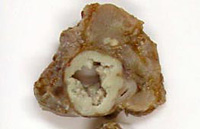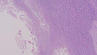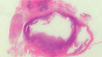 これが空洞化した組織です。まわりの白っぽく見えるところは、炎症を起こしている組織です。ここに結核菌があるかどうか、病理組織検査をします。
