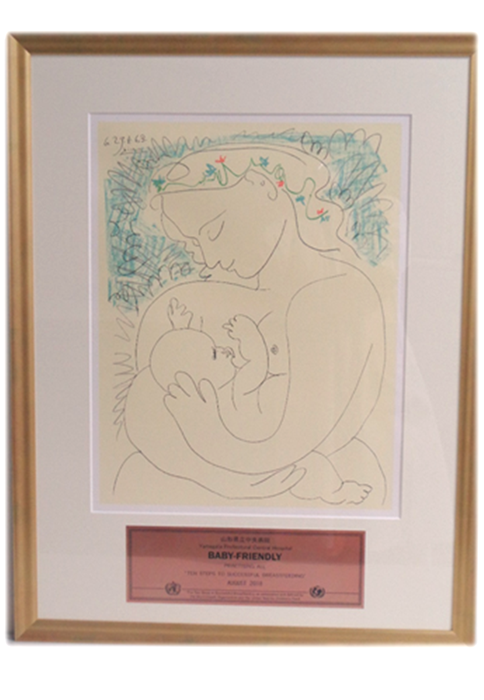 当院は、親子の間にあたたかい心を育み、より良い絆を深め、生涯に渡る健康なからだをつくる、母乳育児を推進しています。そのために、ユニセフが定める「母乳育児成功のための10か条」にもとづいた当院の基本方針を作成し、日々看護を行っています。平成30年に「赤ちゃんにやさしい病院」(BFH:Baby Friendly Hospital) として、その役割を果たしているかどうかの審査を受け、ユニセフから認定をいただくことができました。