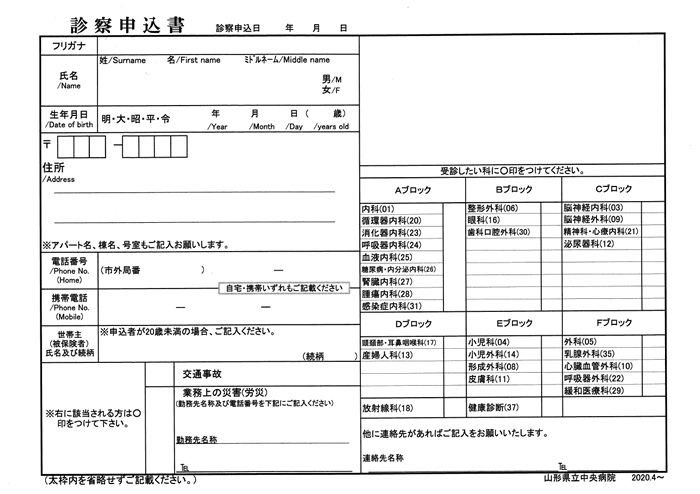 当院を初めて受診される方は、診察申込書と問診票を記入の上、保険証、紹介状を添えて総合受付にと提出下さい。