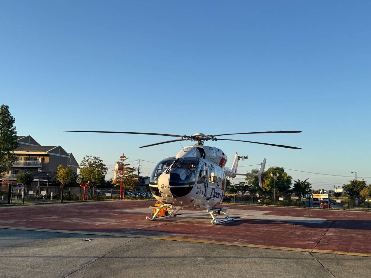 さて、私は9月10月と救急科をローテしておりましたので救急科ローテを紹介します。当院は三次救急ですので重症例も沢山経験することができます。また、1年目からドクターヘリ搭乗の機会があることも当院救急科ローテの魅力です。フライトスーツに身を包み、気分はガッキー!…とワクワクする気持ちの一方、ヘリの要請がかかったら3分ほどで離陸しますし接触予定の患者さんの情報もほぼわからない状態で向かうため、搭乗日は一日中緊張感があります。