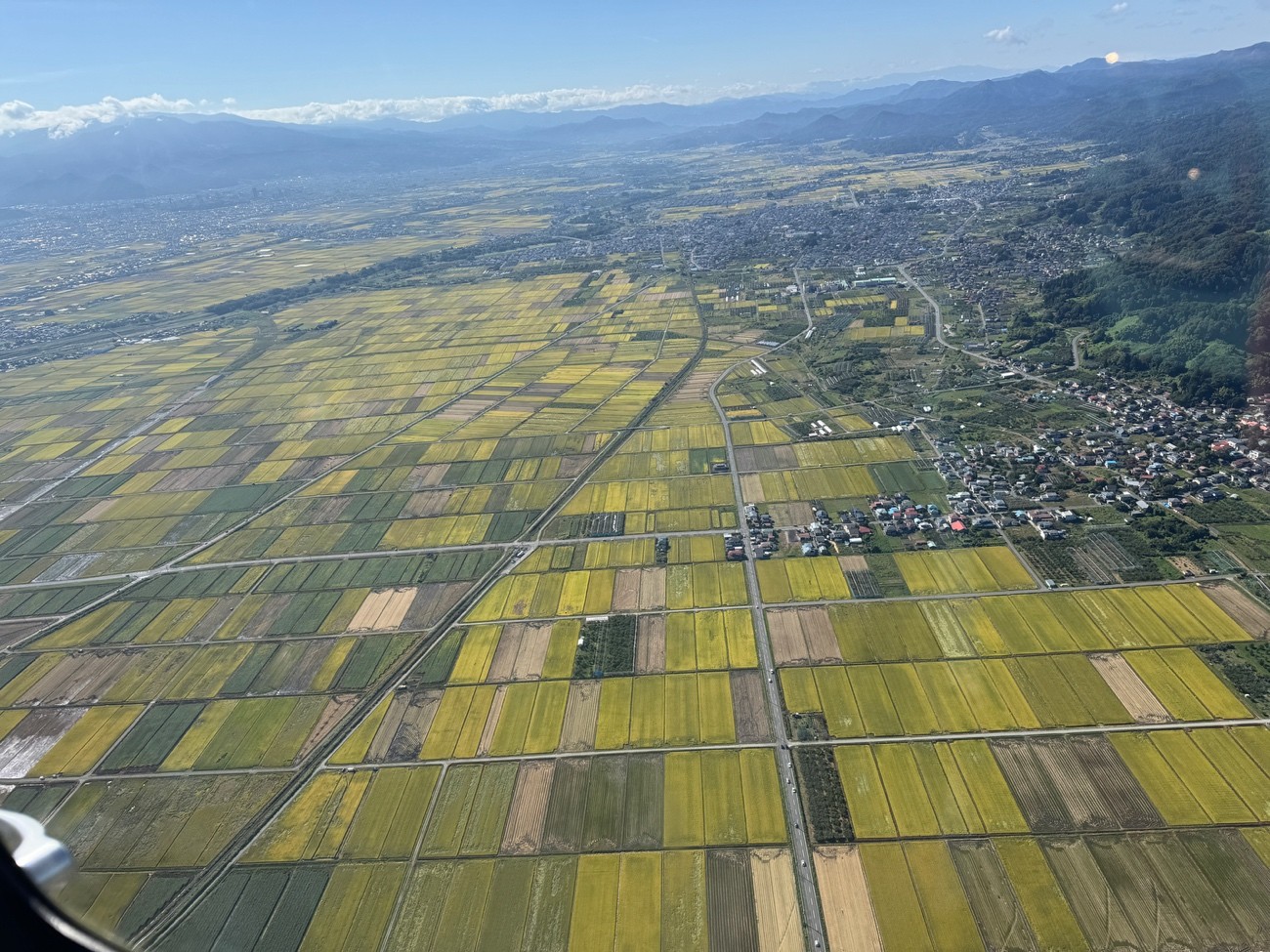 ヘリの乗り心地は意外と良く(酔う人は酔うらしいです)、私の搭乗した時期は稲刈り真っ盛りの黄金色の田んぼや月山の紅葉がとても綺麗でした。