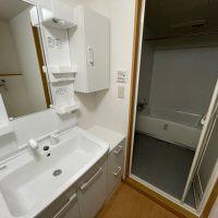 脱衣所には洗濯機置き場の他に、家事台という名の物置きスペースがあります。お風呂も足を伸ばしてゆったりと浸かることができ、追い焚き機能もついています。