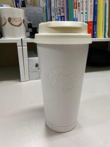 写真は買ったタンブラーです。グランデサイズまで入ります。20円安くなるのでたくさん飲む人は是非。ラテはもちろんフラペチーノも入ります。